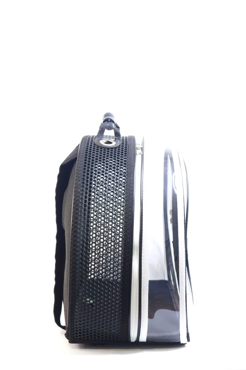 MİGNO Astronot Model Kedi Köpek Taşıma Çantası Şeffaf Fileli Siyah Gri