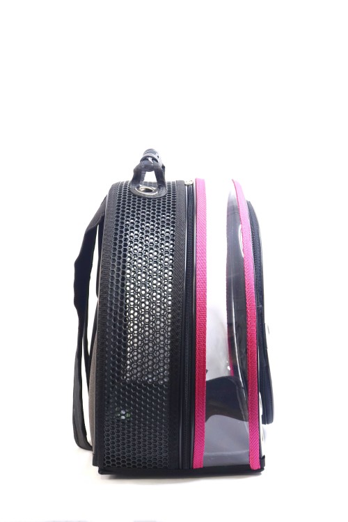 MİGNO Astronot Model Kedi Köpek Taşıma Çantası Şeffaf Fileli Siyah Pembe