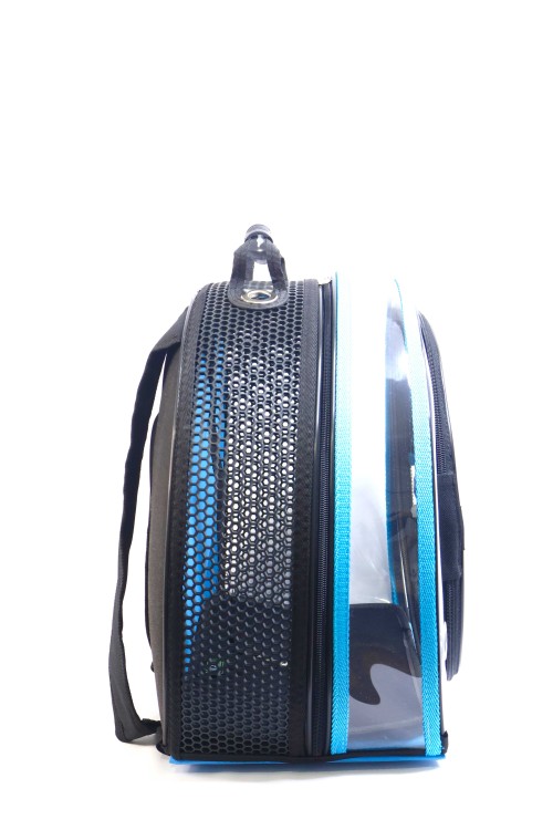 MİGNO Astronot Model Kedi Köpek Taşıma Çantası Şeffaf Fileli Siyah Turkuaz