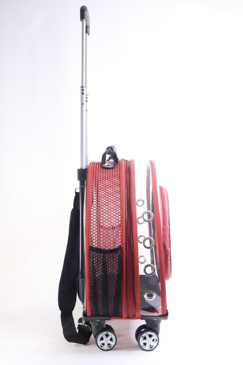 MİGNO Büyük Şeffaf- Fileli Model Kedi Köpek Taşıma Çantası Kırmızı