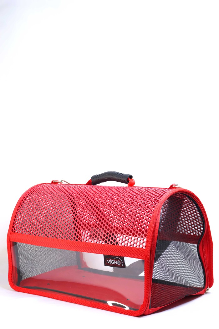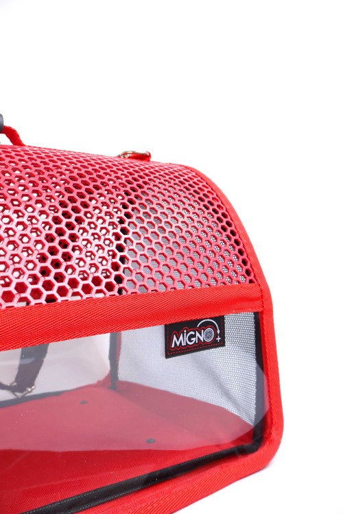 MİGNO FLYBAG Voyager Fileli-Şeffaf Model Kedi Köpek Taşıma Çantaları – Kırmızı
