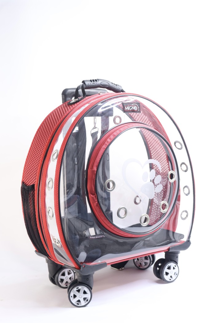 MİGNO Büyük Şeffaf- Fileli Model Kedi Köpek Taşıma Çantası Kırmızı