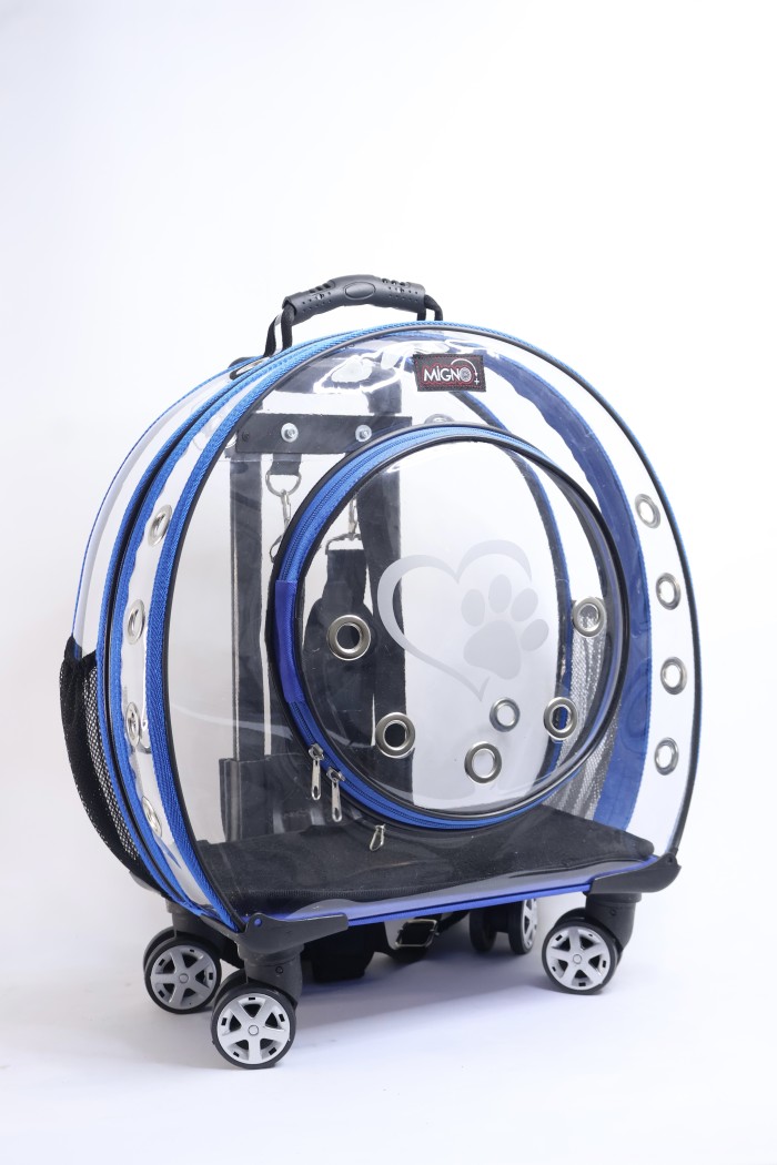 MİGNO Küçük Şeffaf Model Kedi Köpek Taşıma Çantası Mavi 45x40x20 CM.