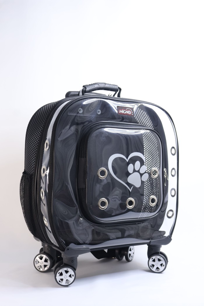 MİGNO Prestige Model Fileli-Şeffaf Kedi Köpek Taşıma Çantaları Küçük – Siyah