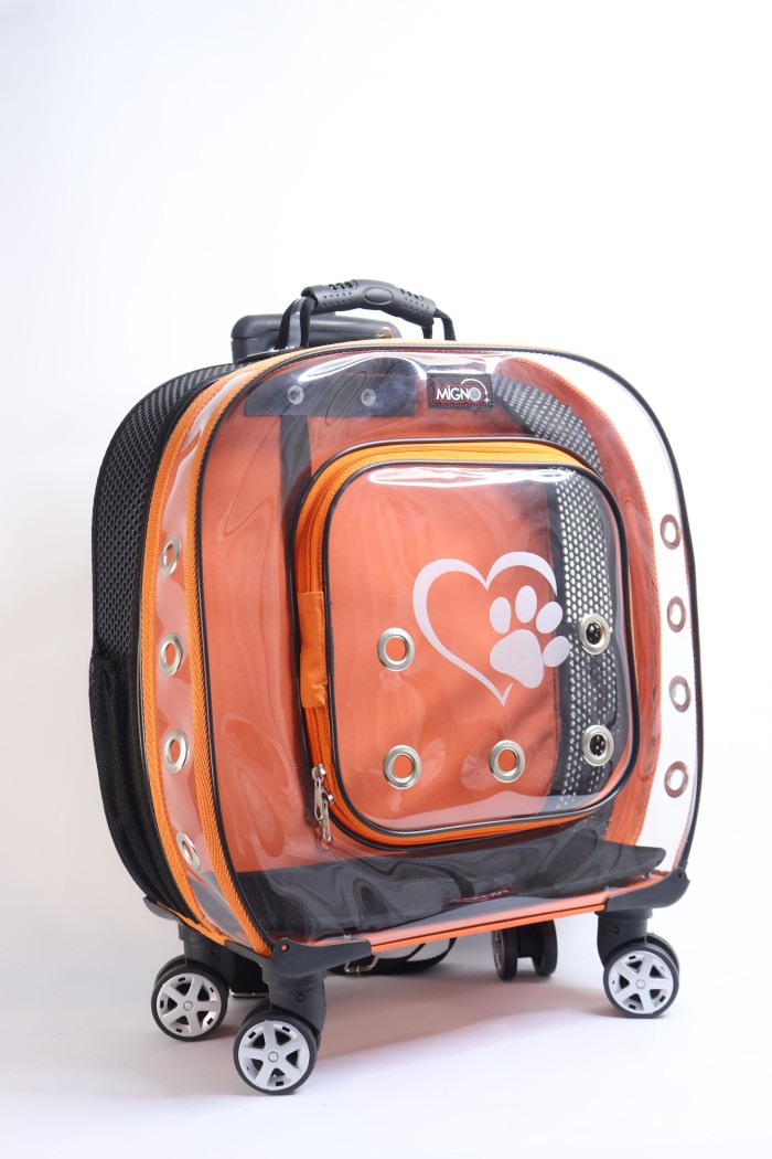 MİGNO Prestige Model Fileli-Şeffaf Kedi Köpek Taşıma Çantaları Küçük – Turuncu