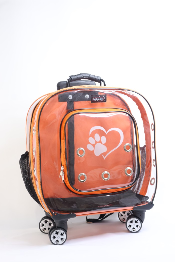 MİGNO Prestige Model Şeffaf Kedi Köpek Taşıma Çantaları Küçük – Turuncu