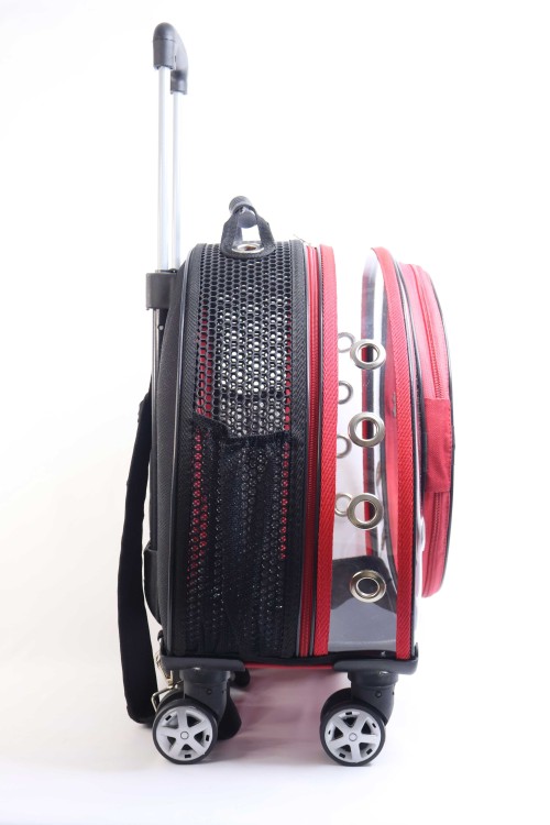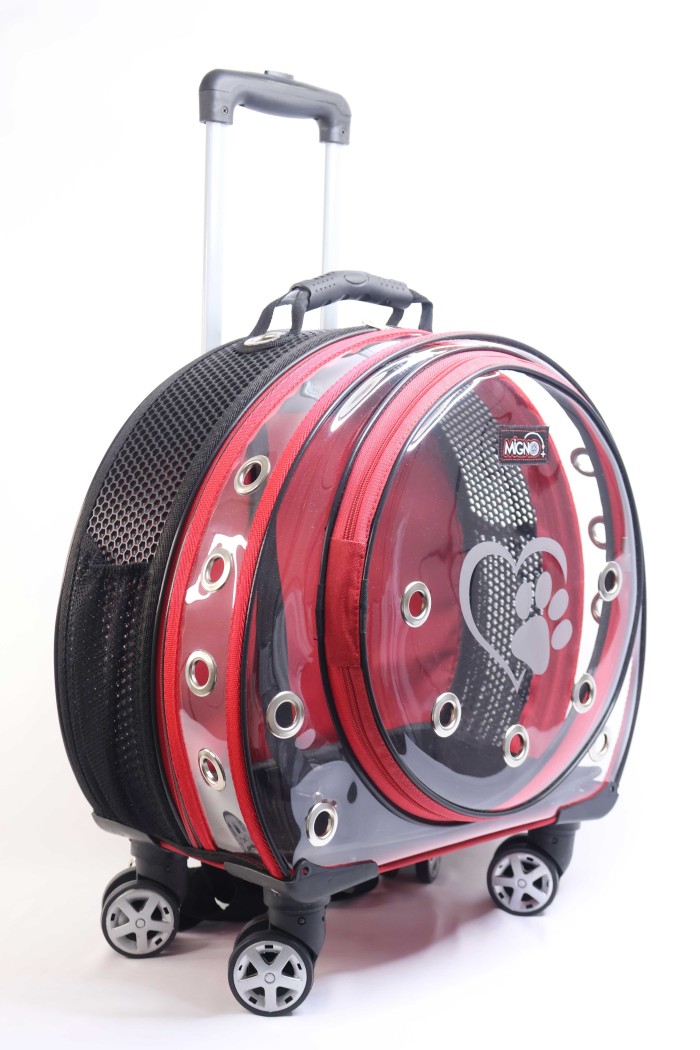 MİGNO Space Model Kedi Köpek Taşıma Çantası Fileli Şeffaf Kırmızı