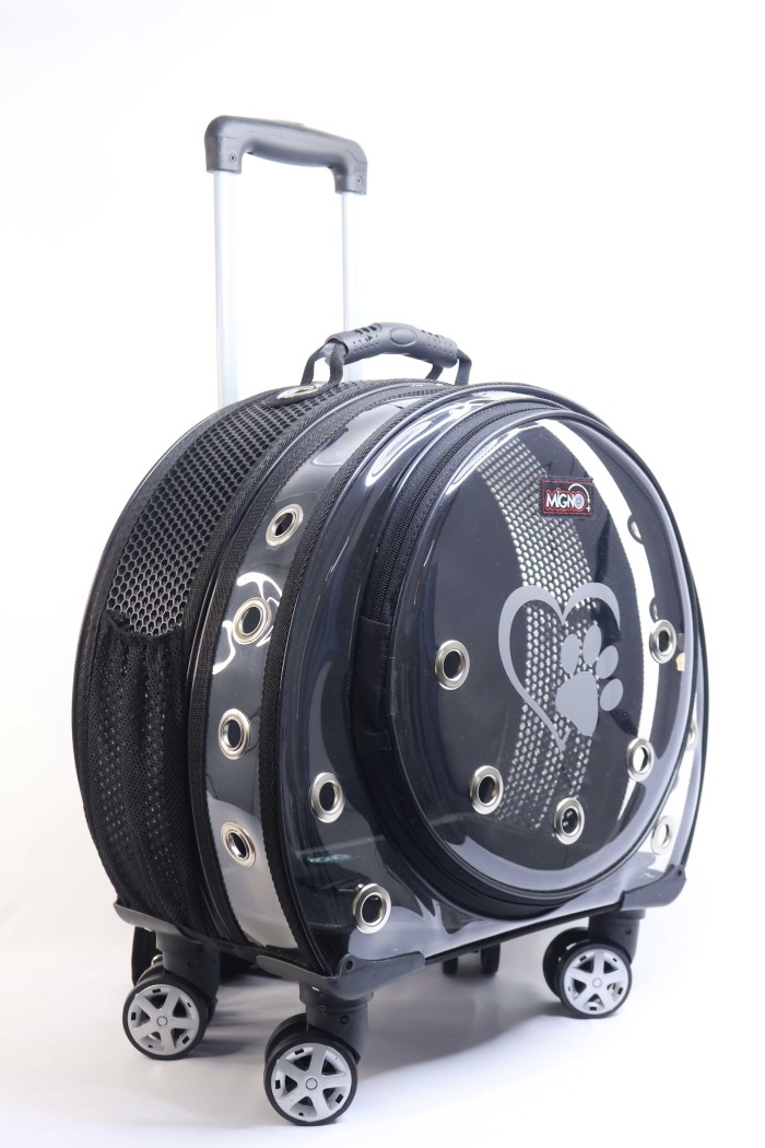MİGNO Space Model Kedi Köpek Taşıma Çantası Fileli Şeffaf Siyah